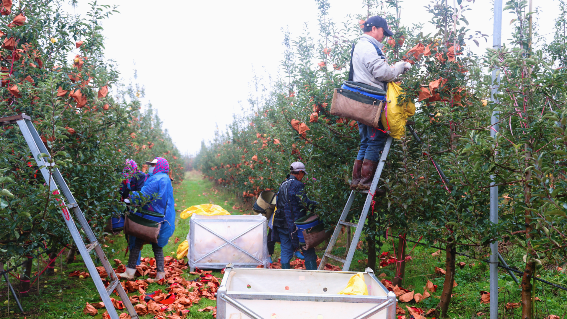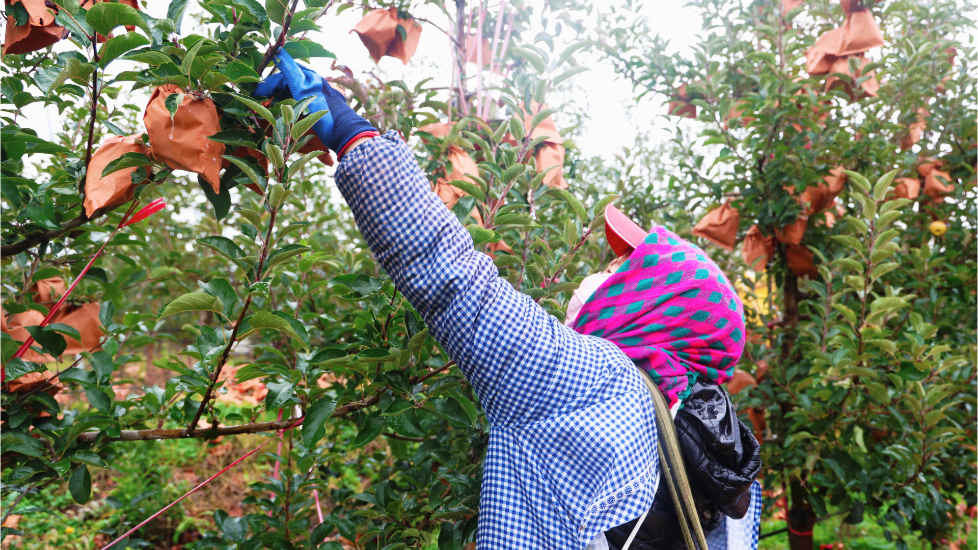 10月22日,走进平凉龙泉源现代农业有限责任公司的高标准果园内,沉甸甸的果实压弯枝头,金黄与绯红交织的苹果,宛如一盏盏小灯笼点缀其间,空气中飘散着沁人心脾的果香。石宝银与其他的200余名工友们穿梭其中,采摘、搬运,到处一片忙碌景象。