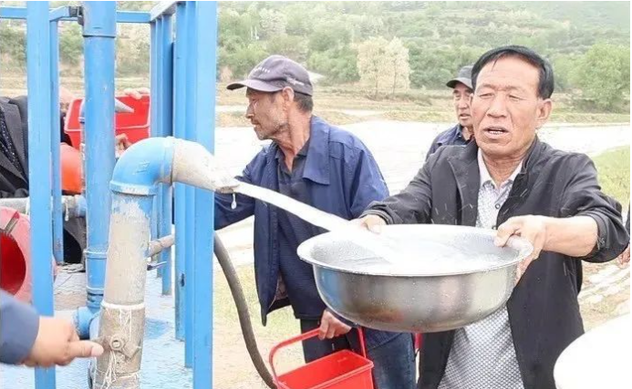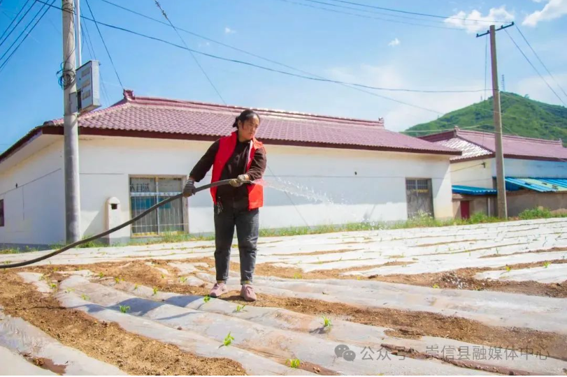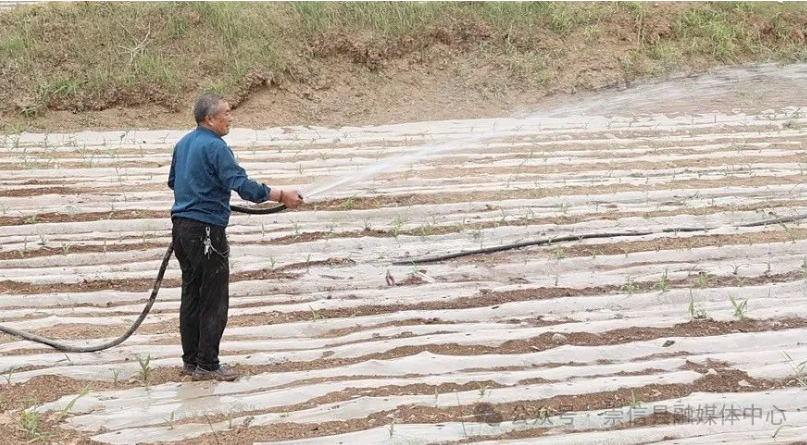 5 月 14 日,记者在新窑镇周寨村看到干部群众正忙着拉水浇灌刚刚出土的玉米苗,落实抗旱浇水保苗等生产管理措施。
