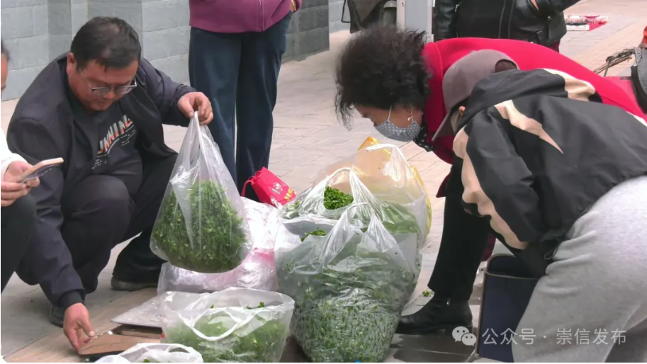 随着首茬五爪子上市,李元谅广场北侧西口的临时销售点逐渐热闹起来,沾着露水的五爪子被装在袋子里码得整整齐齐,引来不少市民前来购买。
