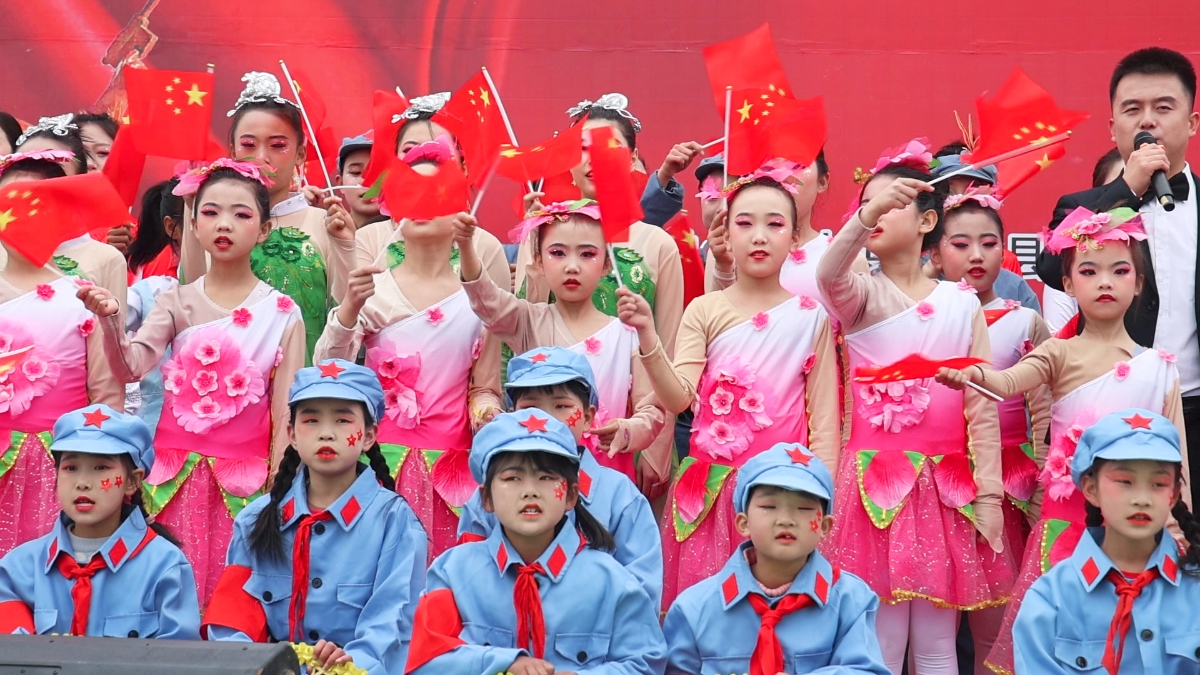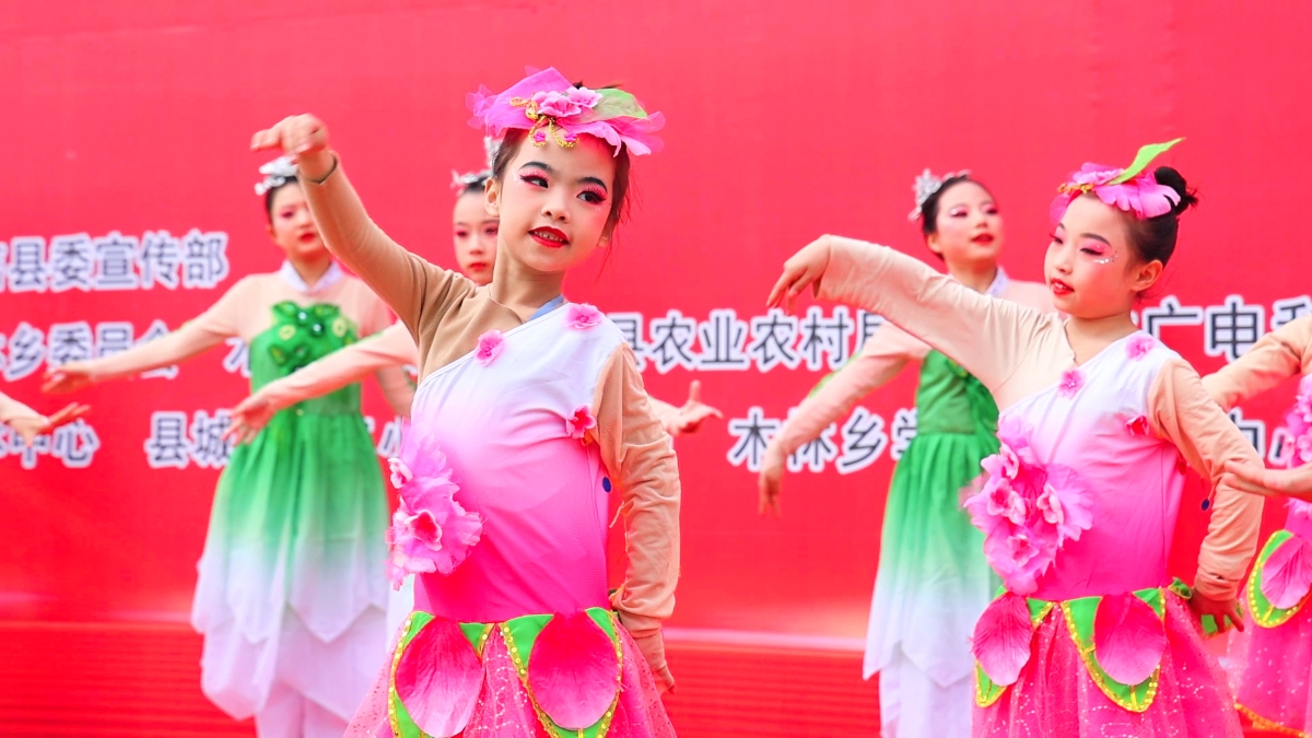 在木林乡金龙村活动现场,红旗招展、红歌涌动,情景朗诵《你是谁》、舞蹈《当那一天来临》、朗诵《党旗颂》、舞台剧《红星闪耀万泉河》等红色文艺节目精彩上演,参演者用最真挚的情感和嘹亮的歌声表达对伟大祖国的热爱和祝福。特别是大合唱《歌唱祖国》点燃了整场活动,浓厚的爱国主义氛围感染着现场的每一个人。