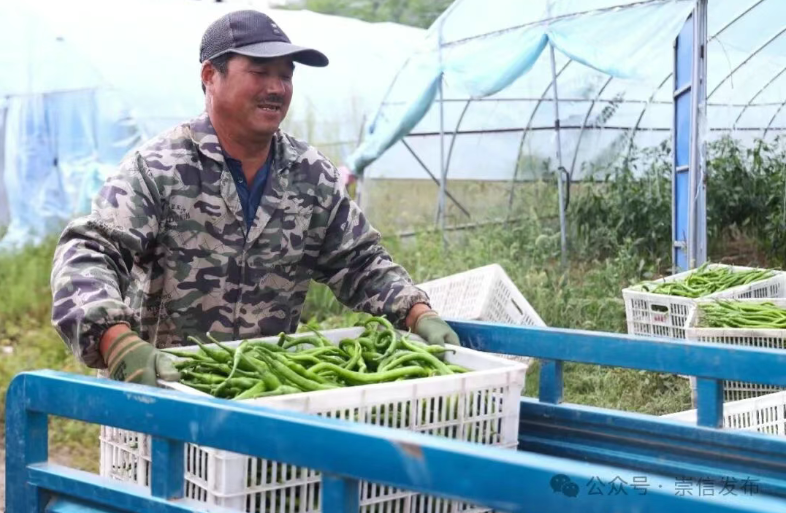 崇信县凭借土壤肥沃、光照充足、灌溉便利等自然优势,充分发挥农投公司示范引领作用,通过“基地+企业+村集体+农户”的联农带农发展机制,大力发展设施蔬菜产业。目前,农投公司在汭河川现代循环农业示范园种植的黄线8号辣椒,已采摘近8成,因其口感脆辣、品质优良,受到市场青睐。
