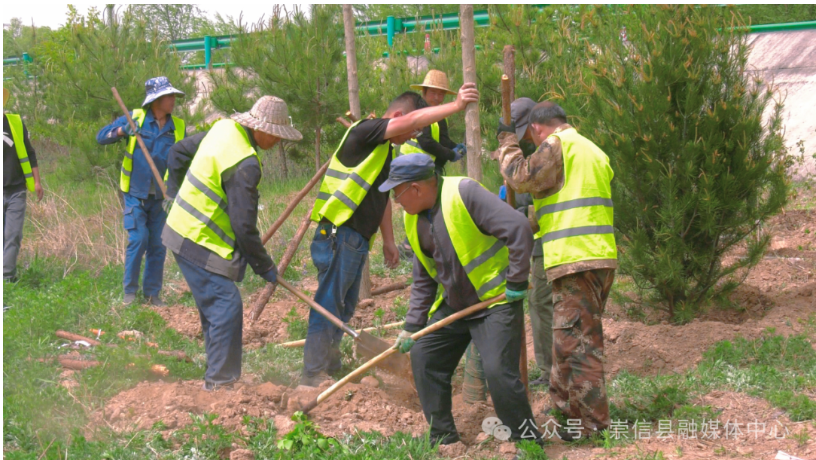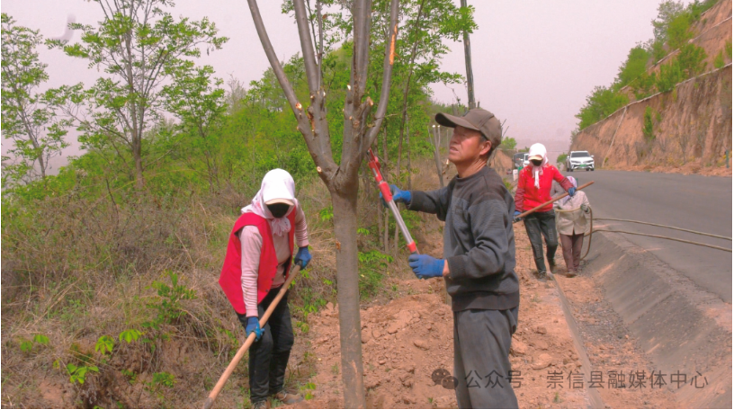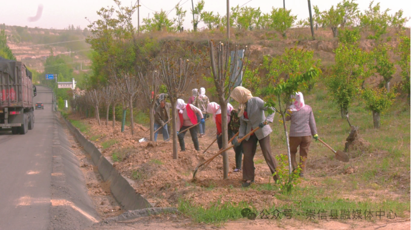 连日来,G312 国道与崇白路道路两侧一派热火朝天的劳动景象,工人们分工明确、密切协作,他们挥锹铲土、扶苗填坑、提水浇灌,将一株株新绿植入大地,用汗水浇灌出一条条生机盎然的生态廊道,为崇信县的交通动脉披上“绿色新装”。