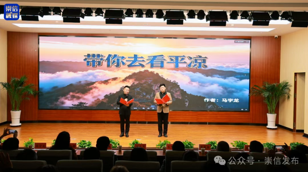 在崇信县老干部活动中心,“中国作家・平凉文学周” 诗歌朗诵会在此精彩启幕。伴随着悠扬婉转的配乐,朗诵会在胡弦经典诗作《敦煌》与《春风斩》的深情演绎中拉开帷幕。随后朗诵了多位知名作家的代表作,朗诵者们以饱满充沛的情感、精湛专业的表达,将文字中蕴含的深沉意境与真挚情感转化为极具感染力的声韵,时而激昂澎湃如江河奔涌,时而温婉细腻似清泉流淌,每一段演绎都精准传递出作家对脚下土地的赤忱眷恋,抒发了对时代发展的由衷赞颂,更彰显了对文学艺术的无限热爱。