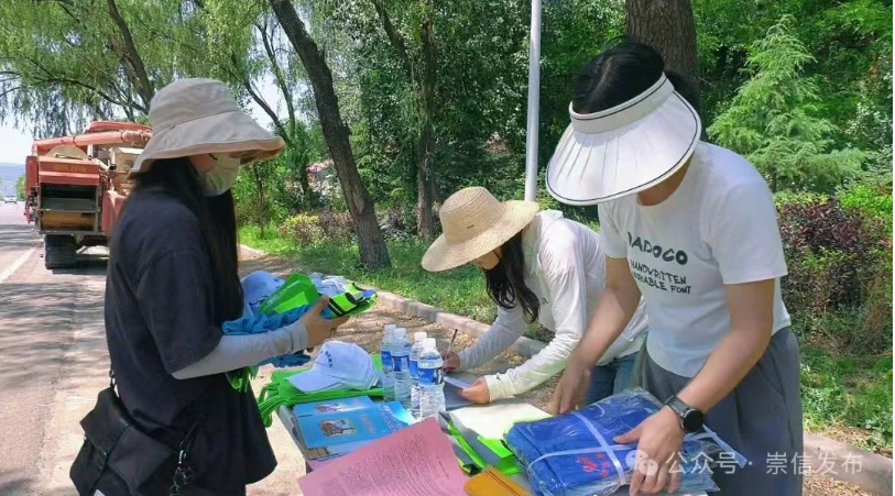 崇信县农机中心高级工程师安慧艳:“及时公布了三夏小麦机收服务热线电话,在城区设置了3个跨区作业服务接待点,为全县三夏机收工作顺利开展保驾护航,截至目前,前来我县作业的联合收割机达50余台,发放各类安全提示宣传单、防暑用品大礼包500余份。”