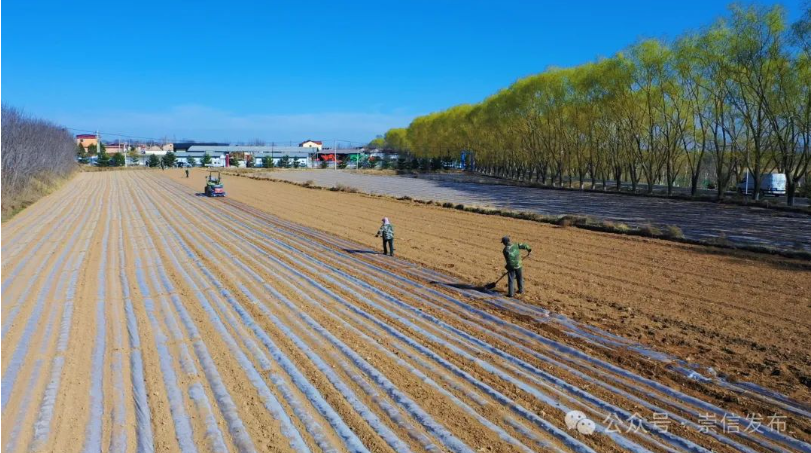 人勤春来早,功到秋华实。眼下正值春耕关键期,在我县的山川塬野上处处涌动着蓬勃生机,农户们抢抓农时开展玉米覆膜作业和芹菜基地管道开挖工作,轰鸣了一曲“农业生产进行曲”。