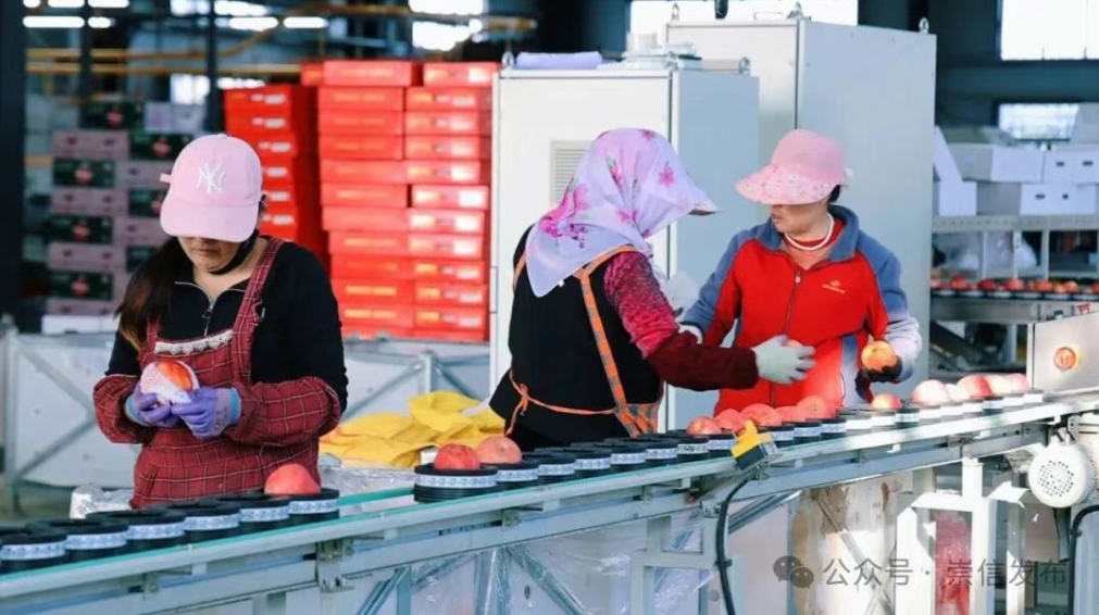 11月13日,记者走进柏树镇木家坡村平凉龙泉源公司的苹果分选车间,现代化的生产线正开足马力运转,一个个色泽红润的苹果经过严格分选、精细包装,即将被发往全国各地。这条生产线,不仅是苹果增值的关键一环,更是群众增收致富的“希望线”。