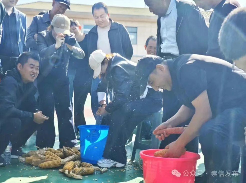 挑担子接力项目中,参赛队员肩挑装满“粮食”的担子,迈着稳健的步伐奋力向前,扁担的晃动间,展现着农民日常劳作的娴熟技能;运水接力赛里,大家手端水碗快跑,传递水源中尽显团队协作精神;谷物精准投手赛场,选手们将谷物精准投进目标容器,每一次成功投掷都引来阵阵欢呼;定时剥玉米项目中,金黄的玉米粒在选手熟练的操作下纷纷落下,经过激烈比赛,大赛组委会为每个项目前三名进行了奖励。