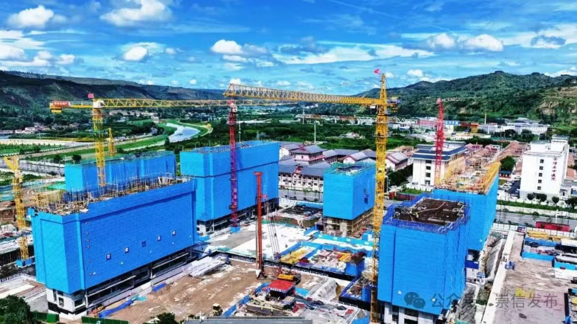 记者高亮:大家好,我现在所在的位置是崇信县世纪花园D区项目的建设现场,在我身后高耸的塔吊正在精准运送建筑材料,勤劳的工人挥洒汗水,在钢筋水泥间精耕细作,绘就了一幅如火如荼的建设画面。
