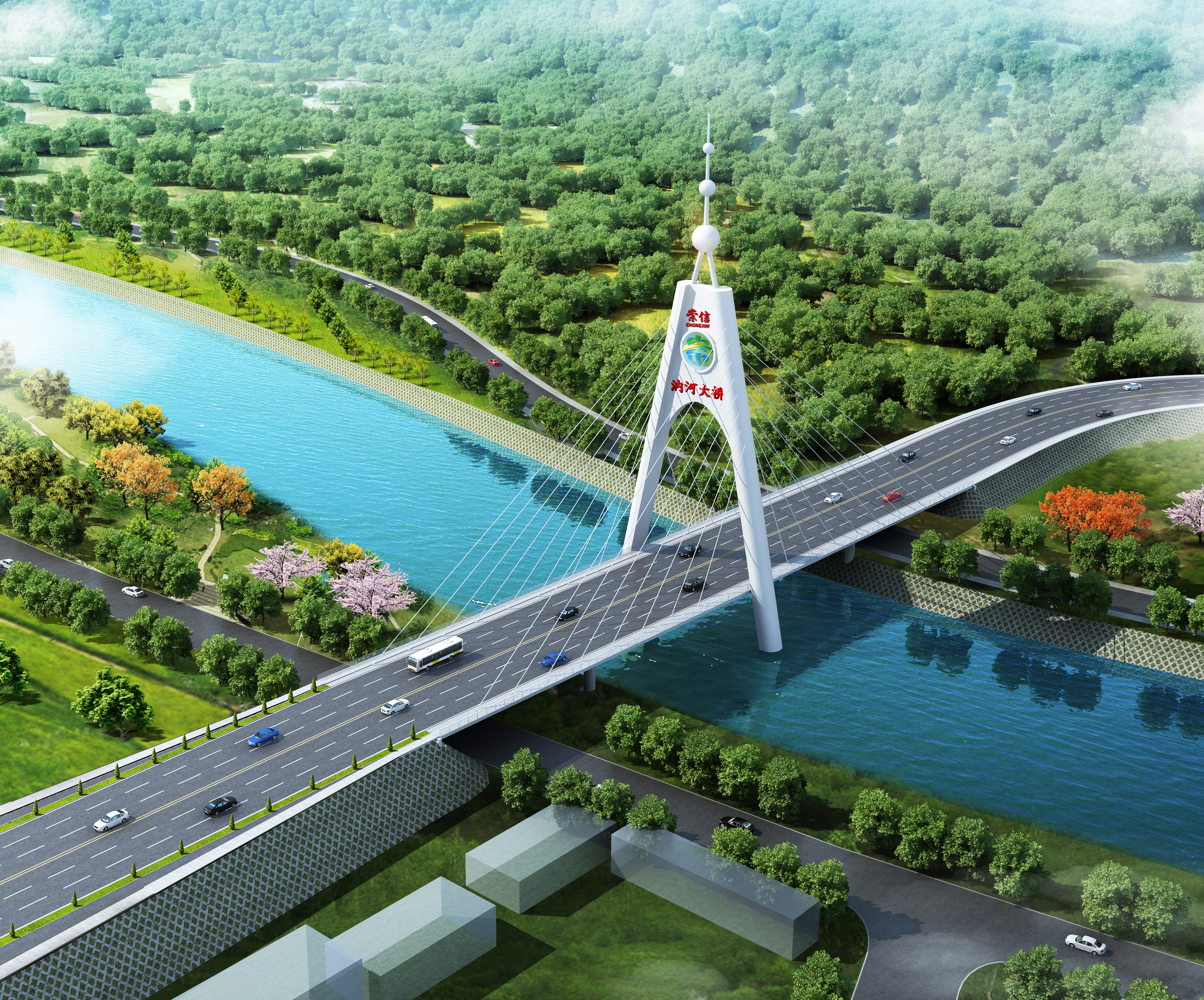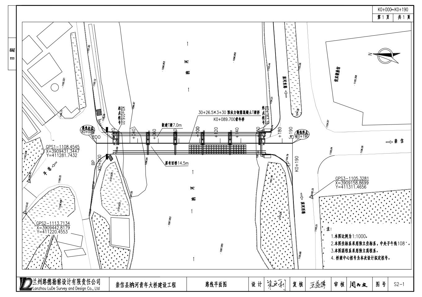 崇信县汭河青年大桥建设工程位于X041线K20+387处,跨越汭河,现有桥梁全长147.38米,跨径组合为30.0米+3×26.5米+30米。本次在旧桥下游一侧加宽7米,加宽部分与原有桥梁跨径一致,加宽后桥面总宽度21.5米,横断面布置为2.0米(护栏及人行道)+1.5米(自行车道)+0.5米(机非分隔带)+2×3.25米(行车道)+0.50米(中央分隔带)+2×3.25米(行车道)+0.5米(机非分隔带)+1.5米(自行车道)+2.0米(护栏及人行道)。新建加宽部分上部结构采用预制安装预应力混凝土简支T梁,下部结构采用重力式U型桥台、实体式桥墩、明挖扩大基础。桥头两侧均设置平交与原有道路相接。