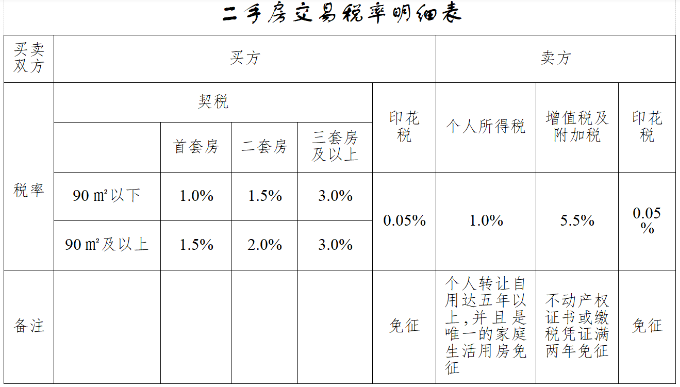 4.《不动产权证书》办理越早或缴税越早,截至房产二次交易时,已满两年的可免征增值税及附加税5.5%。(详见二手房交易税率明细表)