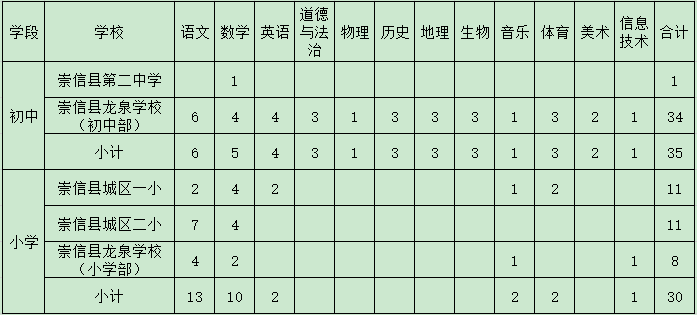 1.义务教育岗位65名。具体为: