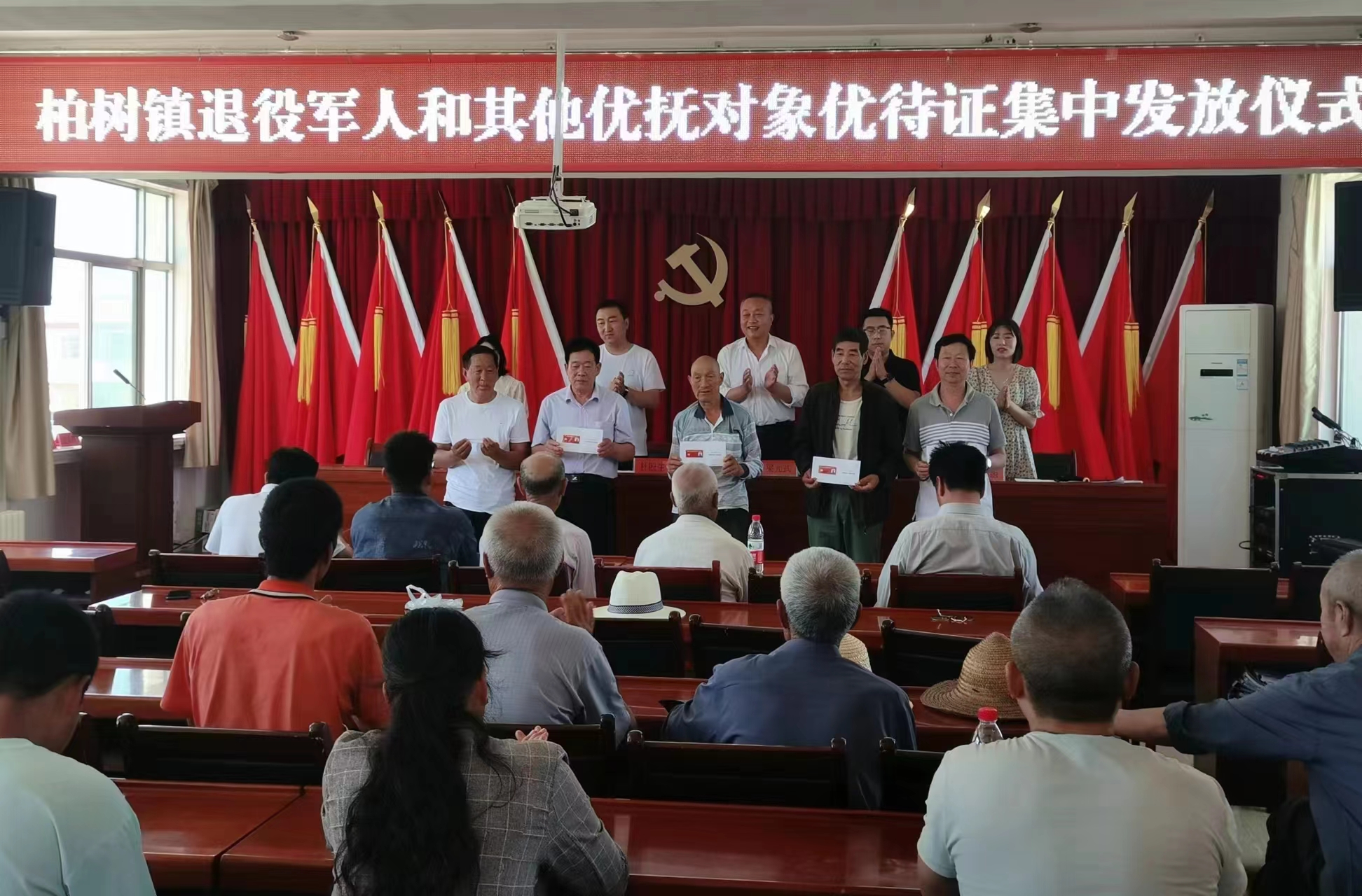 6月24日,柏树镇举行退役军人和其他优抚对象优待证集中发放仪式,53名退役军人和优抚对象将拥有专属自己的“红色名片”,领到人生第二张“身份证”。