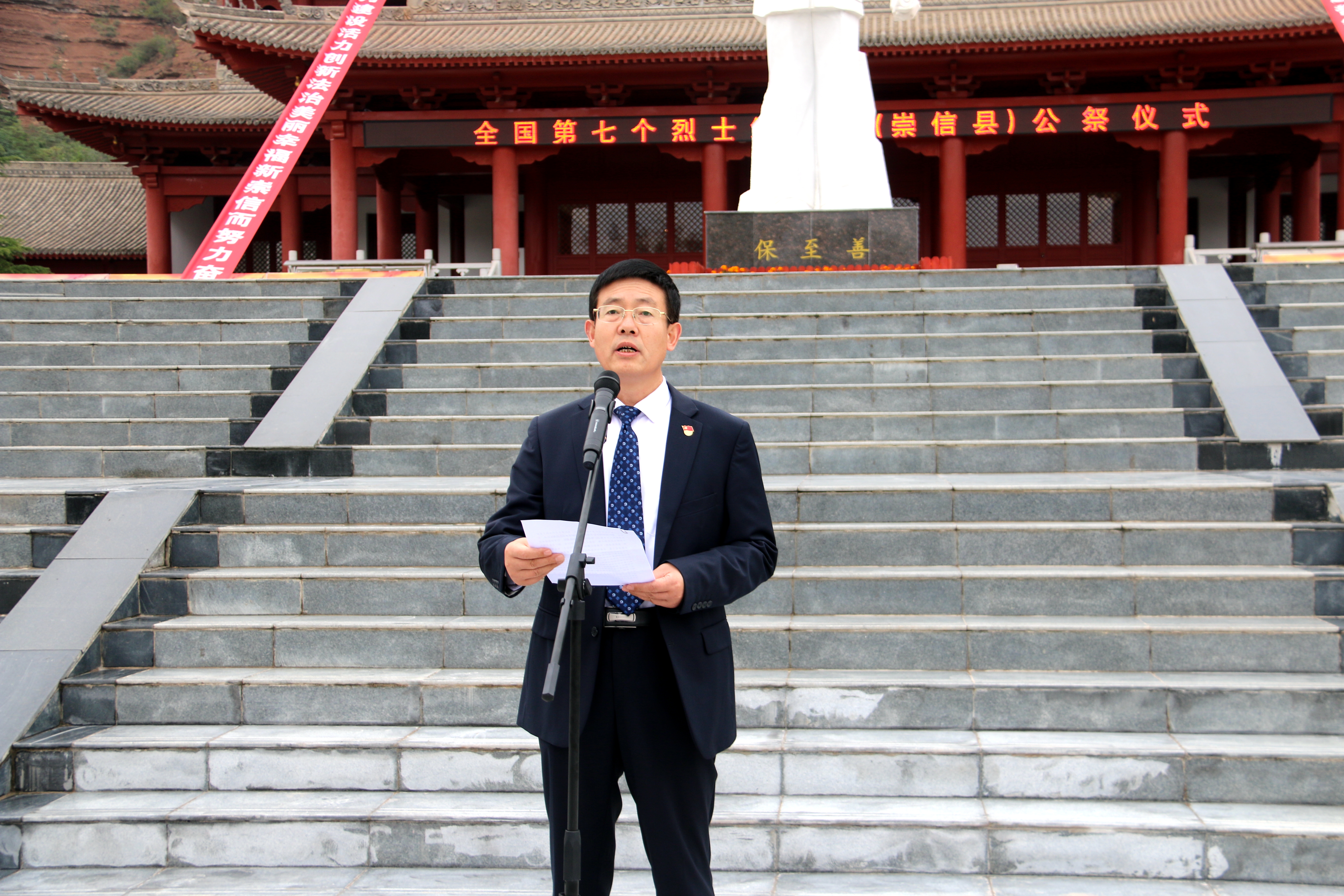 张拴会说,在我国革命、建设、改革的伟大历史进程中,一代又一代优秀中华儿女,前仆后继,英勇牺牲,用鲜血和生命谱写了惊天地、泣鬼神的壮丽史篇。保至善烈士就是其中的杰出代表,在崇信这片红色热土上,还有90多名英雄为了革命事业而英勇牺牲。忆往昔,我们要牢记历史,深切缅怀为新中国的建立和建设献出宝贵生命的革命先烈!永远铭记为社会主义建设和改革开放无私奉献的英烈英雄!