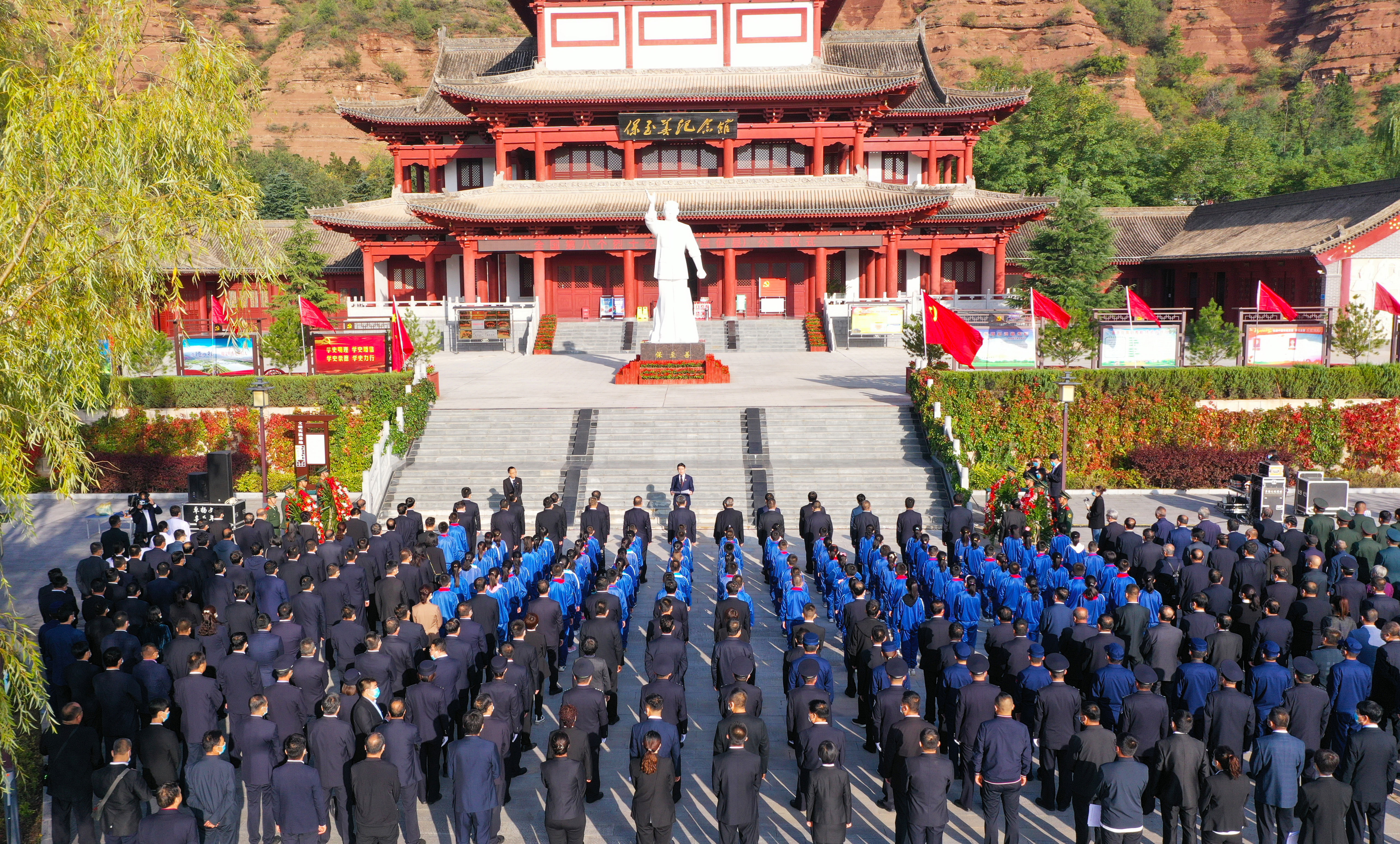 上午8时30分,公祭仪式开始。全体肃立,奏唱了中华人民共和国国歌,少先队员献唱了《我们是共产主义接班人》,武警战士双手稳托花篮,正步走向保至善烈士雕像,张拴会、杨聪、温珍珠、完新义代表县“四大班子”向烈士敬献花篮,仔细整理花篮绶带,全体人员向革命烈士保至善雕像行鞠躬礼。