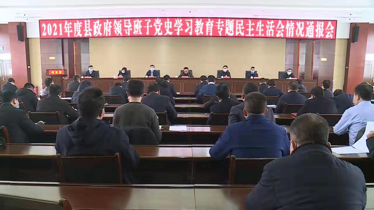 1月27日,2021年度县政府领导班子党史学习教育专题民主生活会情况通报会召开。县委副书记、县政府党组书记、县长杨聪主持会议并通报了2021年度县政府领导班子党史学习教育专题民主生活会召开情况。县委常委、县政府党组副书记、常务副县长席鹏举,县委常委、县政府党组成员、副县长邓双平、秦军杰,县政府党组成员、副县长杜澍、黄国华参加会议。县政府副县长周芳列席会议。
