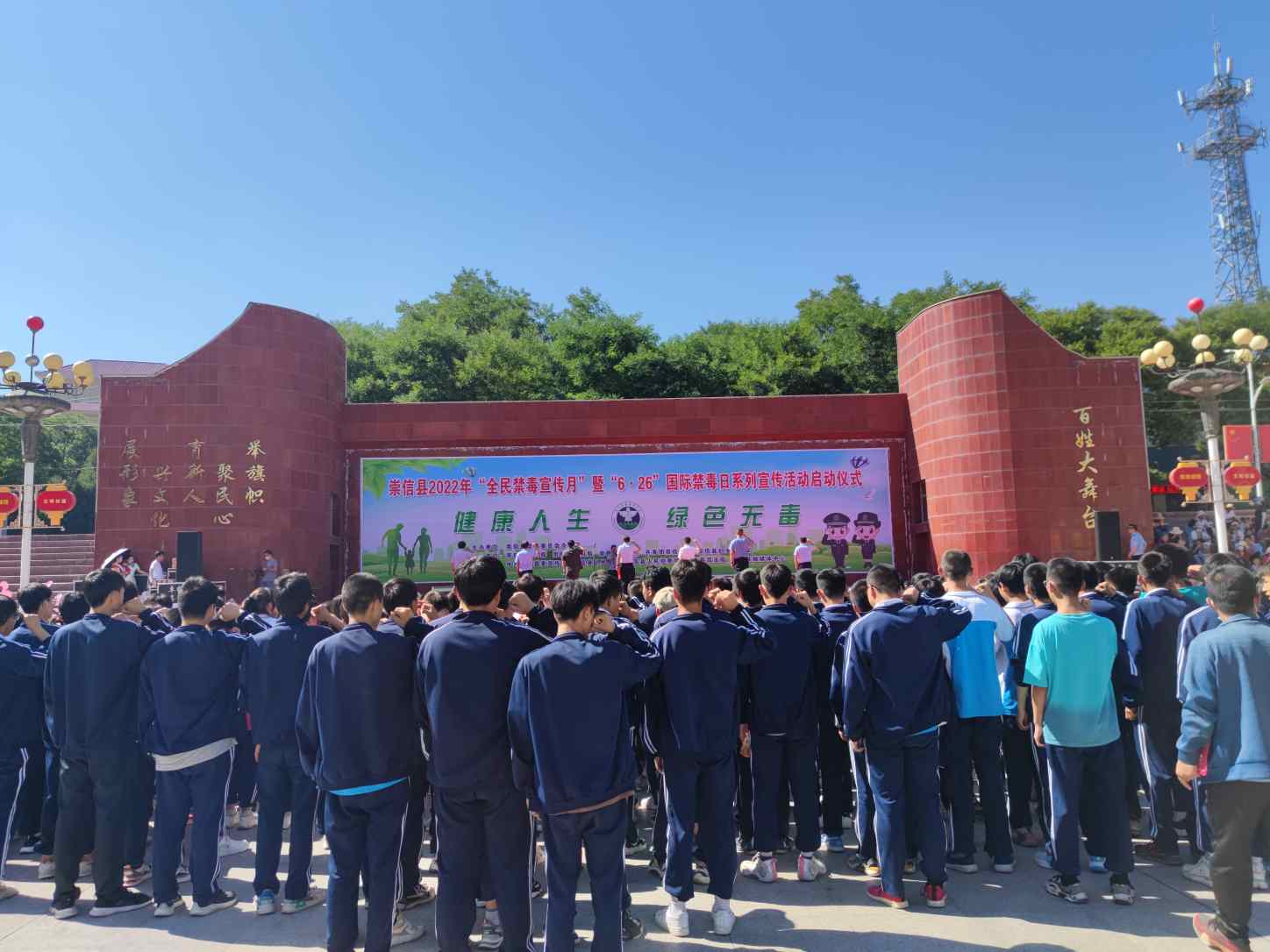 崇信县公安局禁毒大队大队长朱志成说:“2022年6月26日,是第35个6.26国际禁毒日。今天我们在这里隆重举行集中宣传仪式,主要是教育引导广大干部群众,特别是青少年群体,增强禁毒、防毒、拒毒意识,在全社会形成禁毒工作群防群治的新格局。禁毒工作任重而道远,让我们携起手来,共同奏响“健康人生·绿色无毒”主旋律,积极行动起来珍爱生命,远离毒品,为加快建设富裕文明幸福美丽现代化崇信做出积极贡献。”