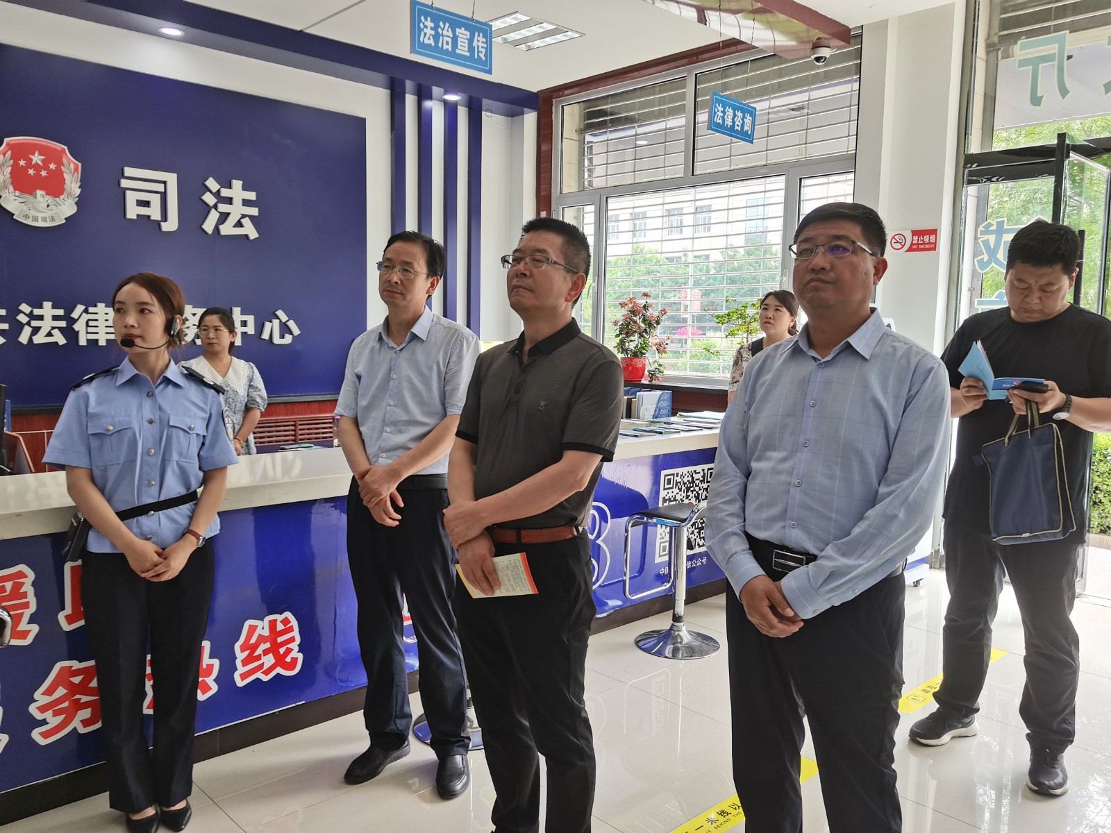 6月27日,平凉市委政法委三级调研员、市法学会秘书长李培献一行调研督查崇信县法学会、反邪教工作开展情况,县委常委、政法委书记赵志刚陪同调研。