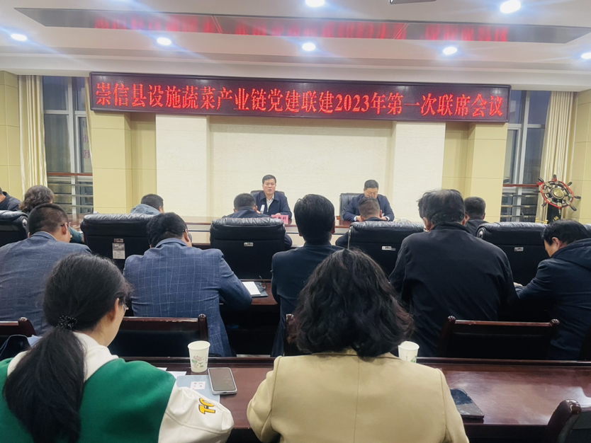 5月8日,崇信县设施蔬菜产业链党建联建2023年第一次联席会议,县委常委、组织部部长、县设施蔬菜产业链党委书记杨新科出席会议并讲话。