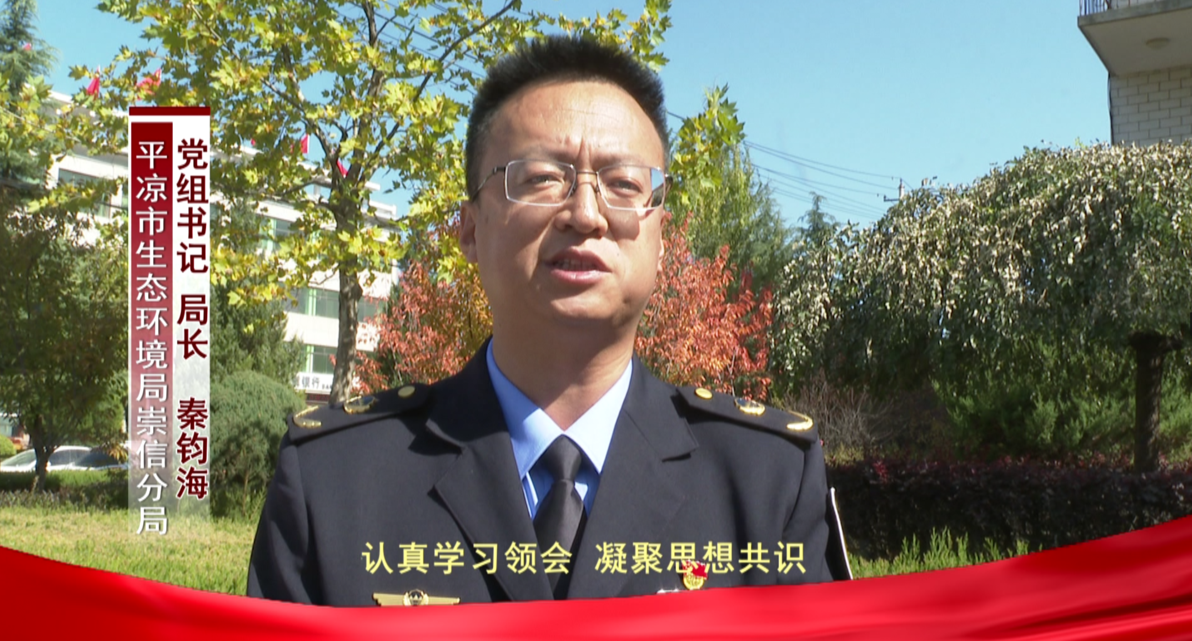 市生态环境局崇信分局局长秦钧海说:“市生态环境局崇信分局将把学习贯彻党的二十大精神作为当前和今后一个时期的重大政治任务,认真学习领会,凝聚思想共识,自觉把思想和行动统一到党的二十大精神上来。认真践行“绿水青山就是金山银山”的绿色发展理念,促进人与自然和谐共生,推进山水林田湖草沙一体化保护、系统治理,深入打好污染防治攻坚战,持续改善生态环境质量,努力使崇信的天更蓝、地更绿、水更清、环境更优美,人民更幸福,为建设美丽中国贡献力量。”