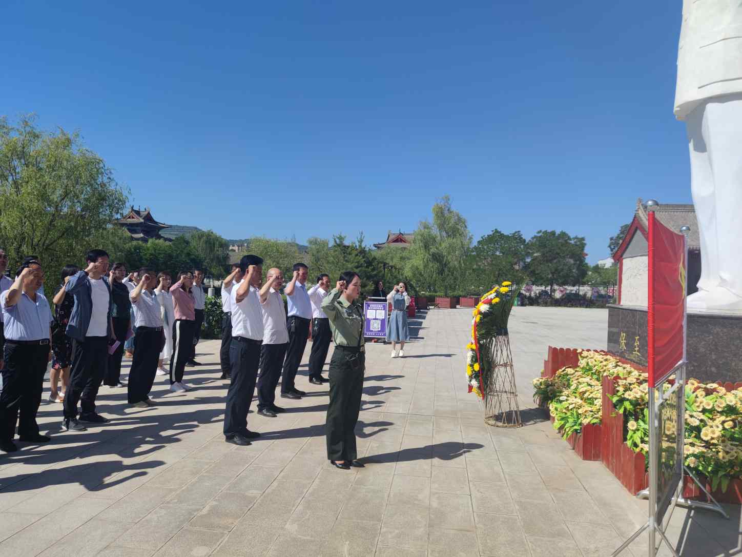 活动中,大家怀着崇敬的心情瞻仰了保至善烈士纪念馆,跟随讲解员了解了烈士保至善短暂而辉煌的一生,并敬献了花篮,再次重温了入党誓词。随后,前往锦屏镇东庄村汭河川现代循环农业示范园、锦屏镇赵湾村进行了观摩。