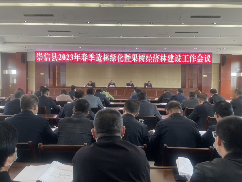 会上印发了《崇信县2023年春季造林绿化工作方案》《崇信县2023年春季县直机关义务植树实施方案》《崇信县2023年绿色廊道巩固提质实施方案》《崇信县2023年城区绿化提质实施方案》。
