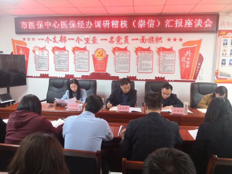 调研组深入县医保中心、县老年养护院,通过听取业务经办管理情况汇报、核查经办资料、座谈交流等方式,对我县医保经办机构设置、内部监管、“一站式”报销运行、监管安全风险等情况进行了调研稽核。