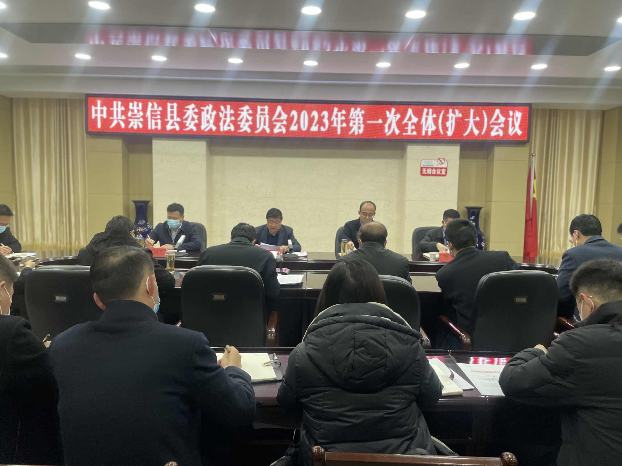 2月21日,崇信县委政法委员会2023年第一次全体(扩大)会议召开。县委常委、政法委书记赵志刚主持会议并讲话。县政府副县长、县公安局局长温磊,县人民法院院长苏斌杰,县检察院检察长李铭参加会议。