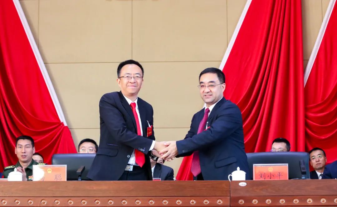 新当选的县人民政府县长刘小平作了发言,表示将倍加珍惜组织的信任和人民群众的重托,在县委的坚强领导下,在县人大、县政协和社会各界的监督支持下,团结带领县政府一班人,秉承优良传统,不断开拓创新,尽心竭力把各项工作抓实办好,以实实在在的业绩回馈组织、回报人民。