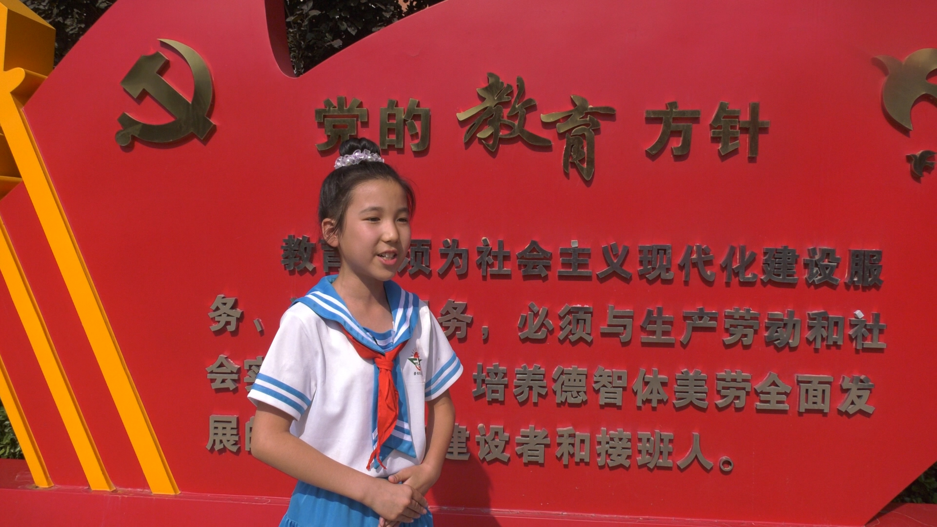 城区二小学生陈曦说:“丰富多彩的校园生活,为我们美好的童年插上了展翅翱翔的翅膀。我们将在“厚德博学,启智创新”的校训熏陶下,争做新时代好少年,以优异的成绩、良好的品德成长为社会需要的栋梁之材!”