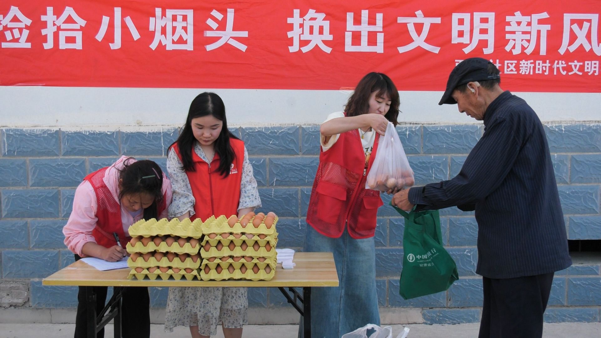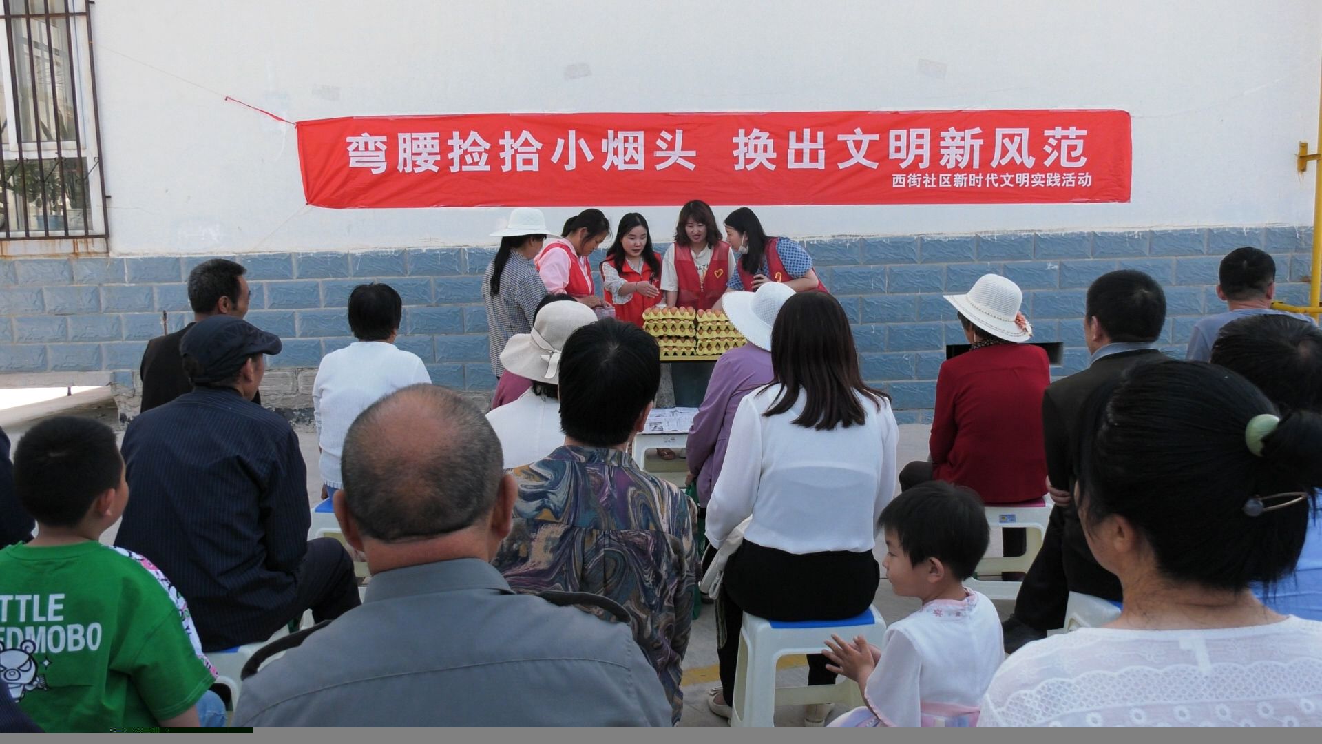 为树立绿色环保观念,引导广大居民朋友养成文明行为习惯,营造文明健康、绿色环保的浓厚氛围。6月14日,崇信县城市社区西街社区联合县创城办在百泰家园小区开展“烟头换鸡蛋”新时代文明实践活动,居民群众共计50余人参加。