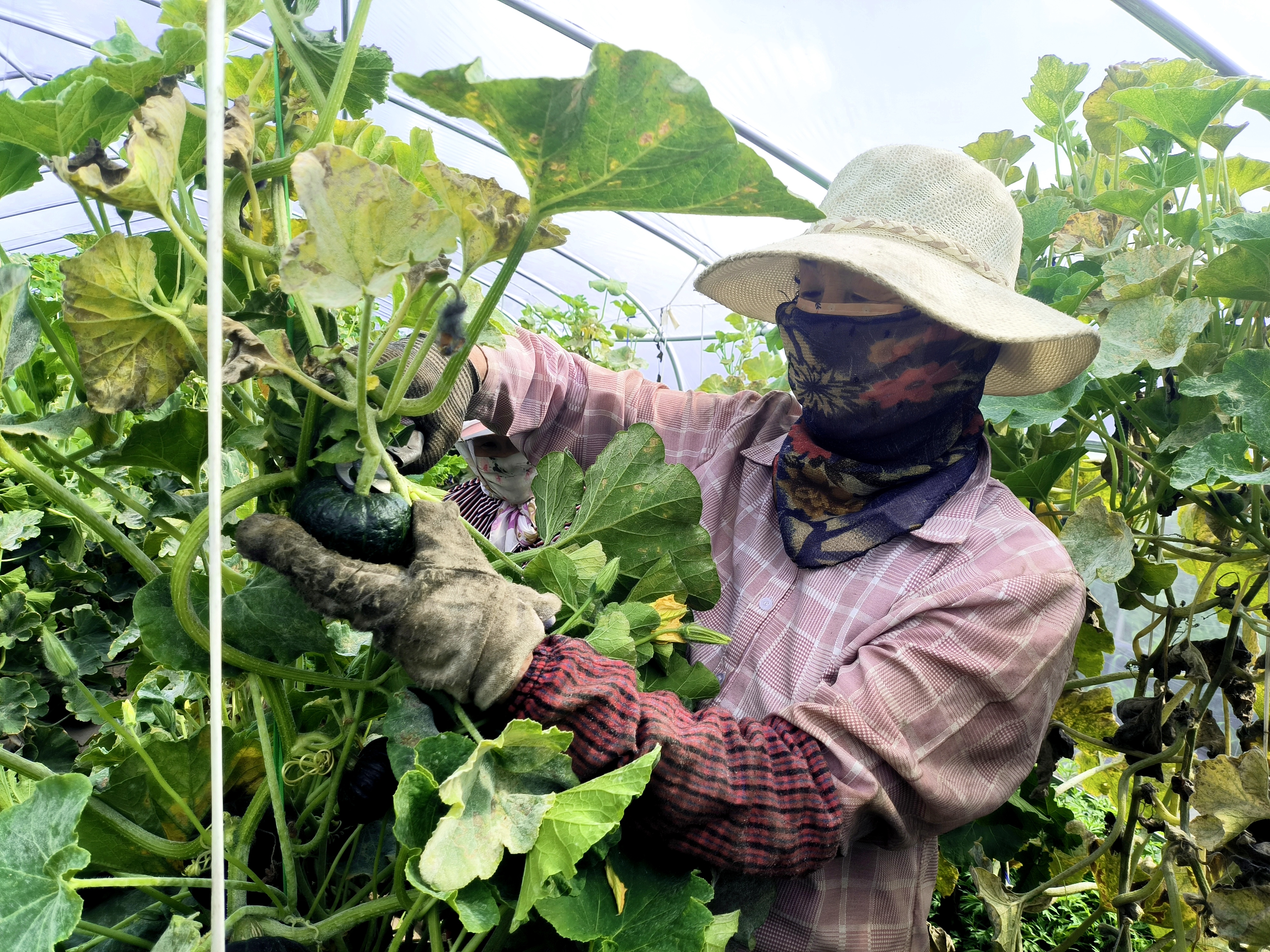 平凉新丰园农业科技有限公司总经理储嘉仁说:“ 我们园区的总共有钢结构大棚600座,春季跟秋季各种植300座钢结构大棚,今年我们的南瓜长势特别棒,亩产量能突破到4500斤,采摘后将全部销往北京市场。”
