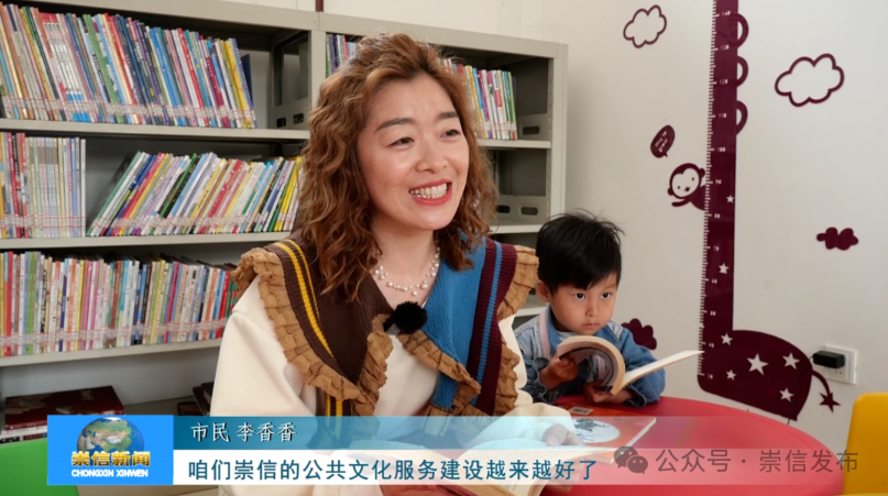 市民李香香:“创建全国文明城市以来,咱们崇信的公共文化服务建设越来越好了,尤其是文化三馆,我平时经常带娃过来,环境也好,藏书也多,经常举办各种文化活动,我们也经常参加,工作人员的服务态度特别好,这里能满足不同人群的需求。”