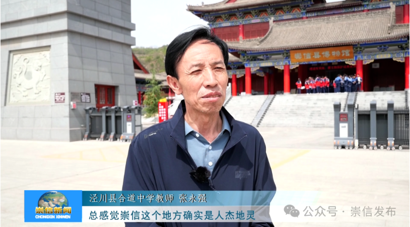 泾川县合道中学教师张永强:“泾川离崇信也不太远,我以前也来过几次,总感觉崇信这个地方确实是人杰地灵,民风淳朴,崇信人文环境确实比较好,环境优美,历史浑厚,设施配套齐全,我们确实是不虚此行!”