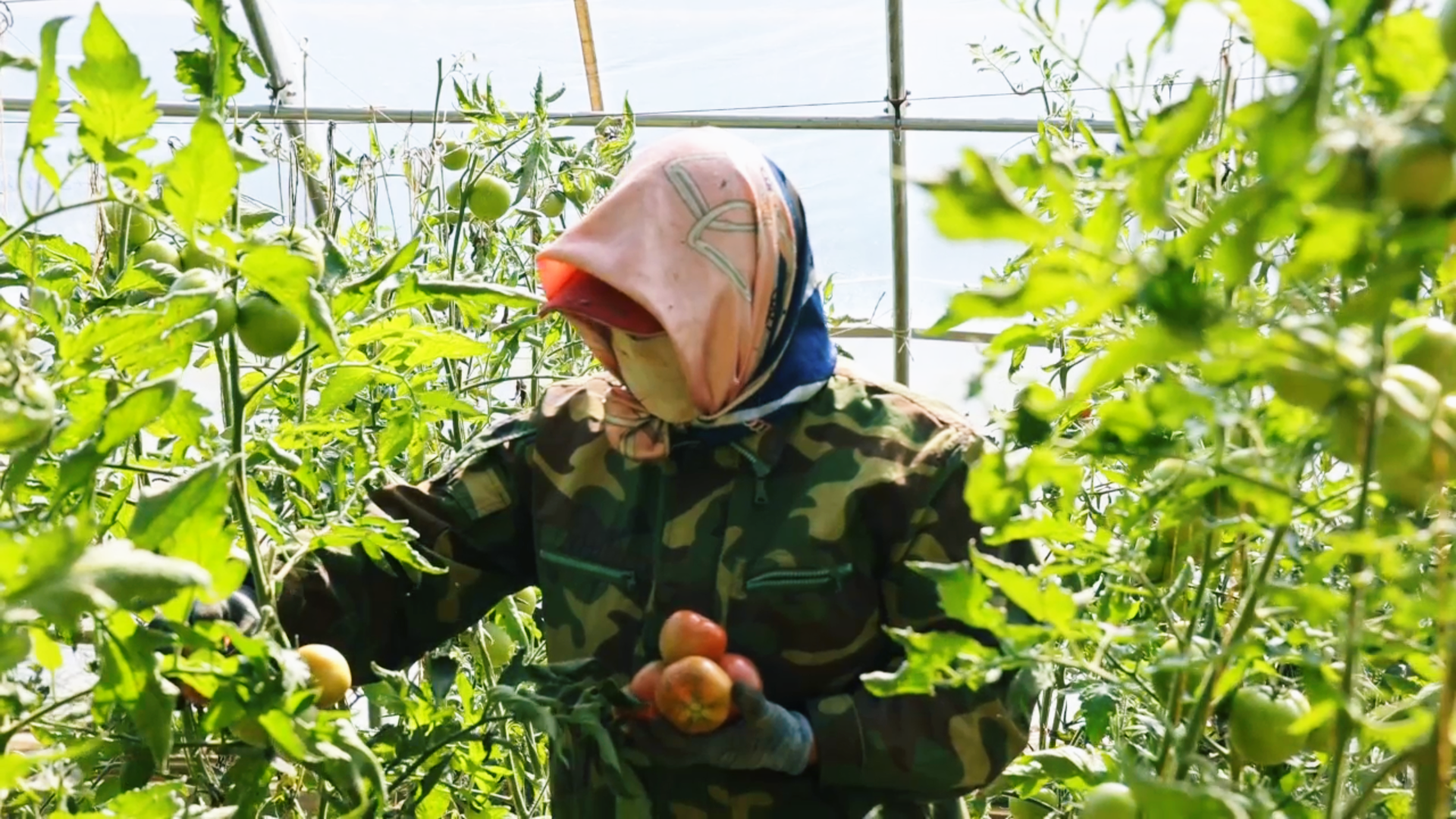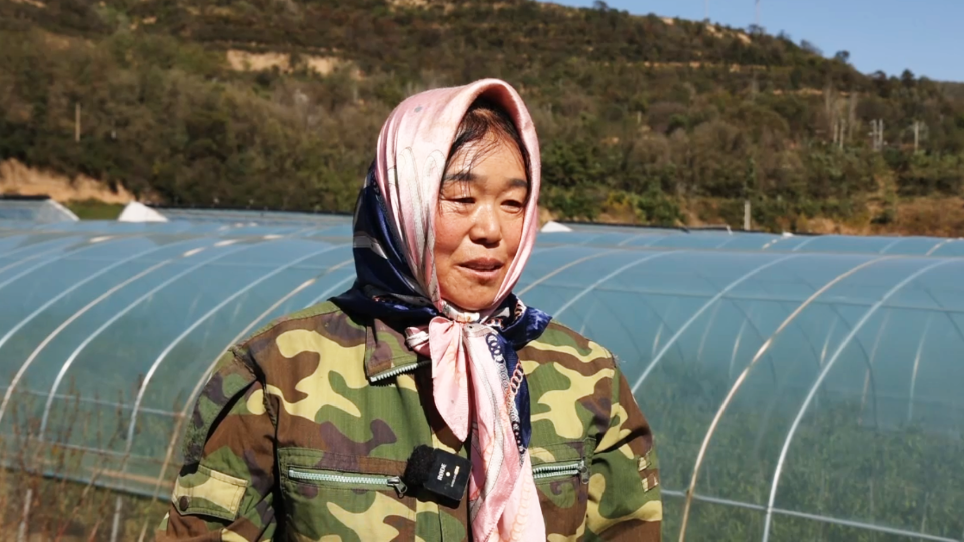 基地务工群众田伏花:“自从这个大棚建起后,我经常在这打零工,一天100块钱,娃娃老人能照看上,我感觉特别好。”