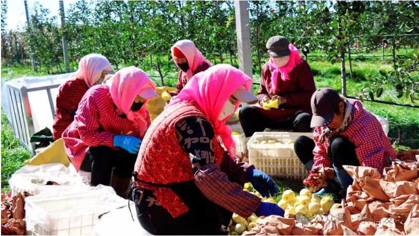 在黄寨镇黄寨村和山禄果园内,100 多名工人紧张有序忙碌着,他们精心挑拣苹果并分类装筐。一筐筐苹果被运到车上,即将销往外地,为远方的人们送去来自黄寨镇的甜蜜与丰收的喜悦。