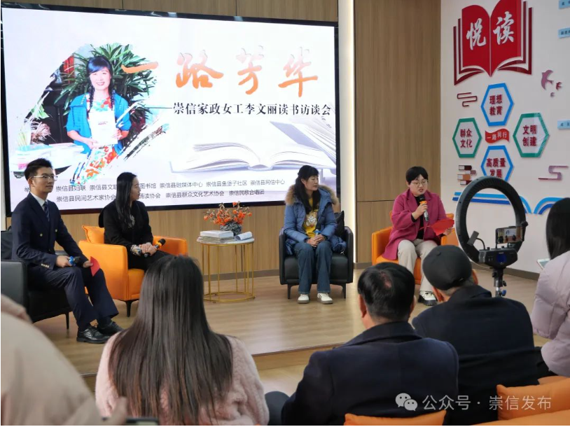 为深入宣传家政优秀代表李文丽典型事迹,激发全县广大妇女群众和家政企业干事创业的热情,全面促进女性就业创业,团结带领广大妇女争做伟大事业的建设者、文明风尚的倡导者、敢于追梦的奋斗者。12月12号,崇信县妇联联合县文联、网信中心、融媒体中心、城市社区、诵读协会、民间艺术家协会等社会团体在县图书馆举办了“一路芳华”优秀家政女工李文丽读书访谈会。
