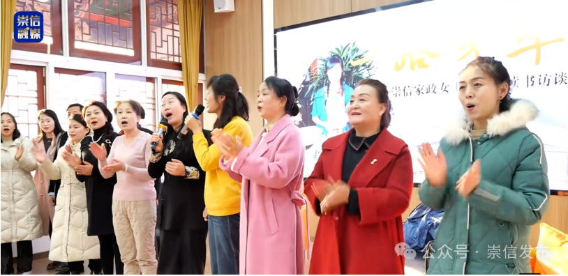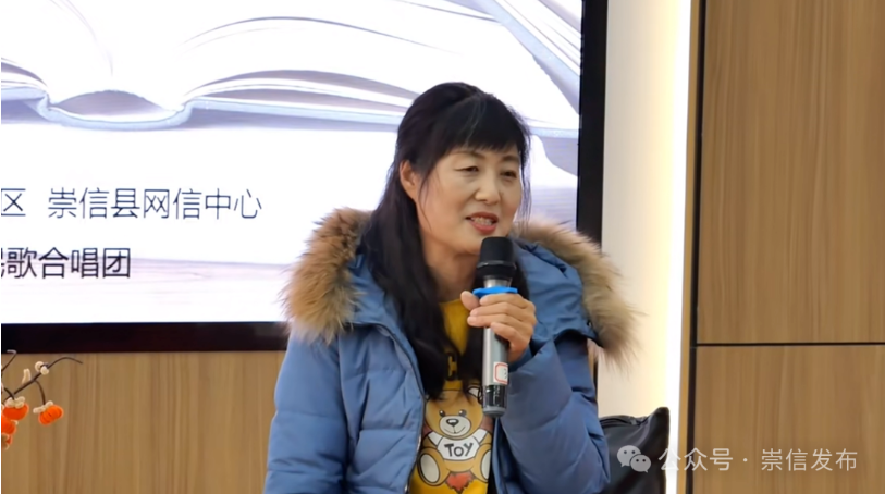 活动中,主持人和嘉宾通过访谈的形式,共同探讨了读书和文艺创作对自我的改变、女性自我成长的方式方法、如何平衡个人发展和家庭角色等话题。李文丽为现场的女性朋友分享了自己的文学、绘画创作经验和家政经历,现场时不时的为她精彩的分享鼓掌喝彩。活动最后李文丽现场加入崇信民歌合唱团,与大家互动合唱“崇信民歌”,整个活动在欢快的歌声中落下帷幕。崇信县城市社区抖音号和本地网红对整场活动进行了网络直播,收到了良好的社会效果。