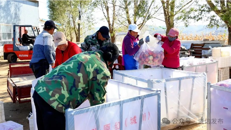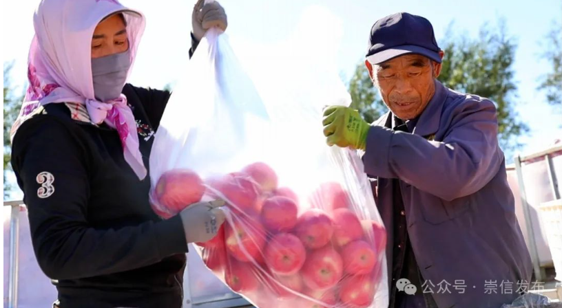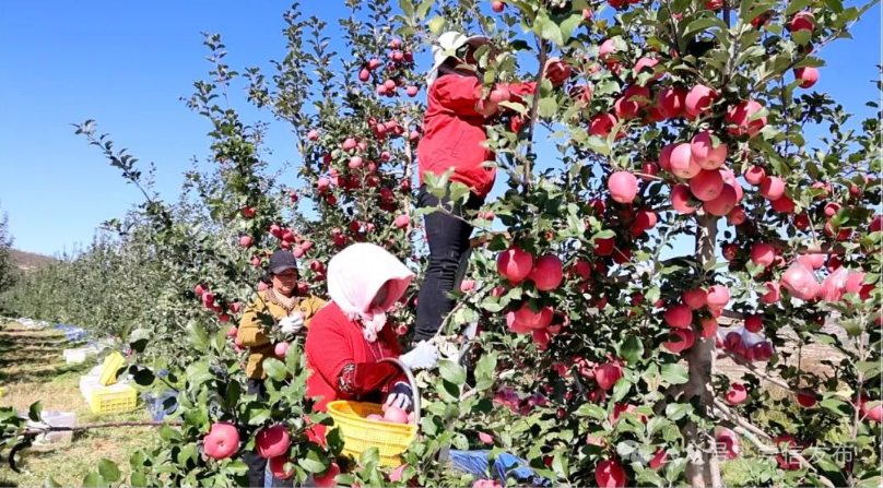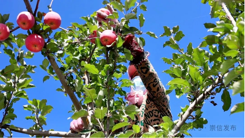 眼下,正是晚熟红富士苹果的丰收季,10月22日记者走进位于崇信县锦屏镇马沟村的大山梁果园内,只见一个个鲜果挂满枝头,香气扑鼻、红艳可人。果园负责人负责人郭峰带领60多名群众在苹果园里采摘、分拣、装箱、拉运,一派繁忙景象。