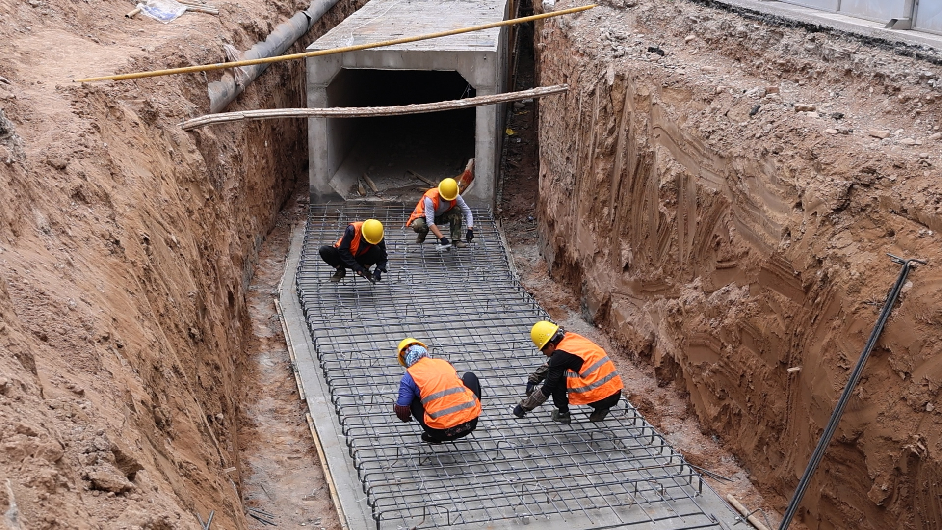 崇信县水利工程建设站副站长何博说:“5月1日开工建设,到目前为止已开工28天,目前已完成开挖箱涵基础450米,完成钢筋混凝土向下180米,浇筑砼垫层240米。”