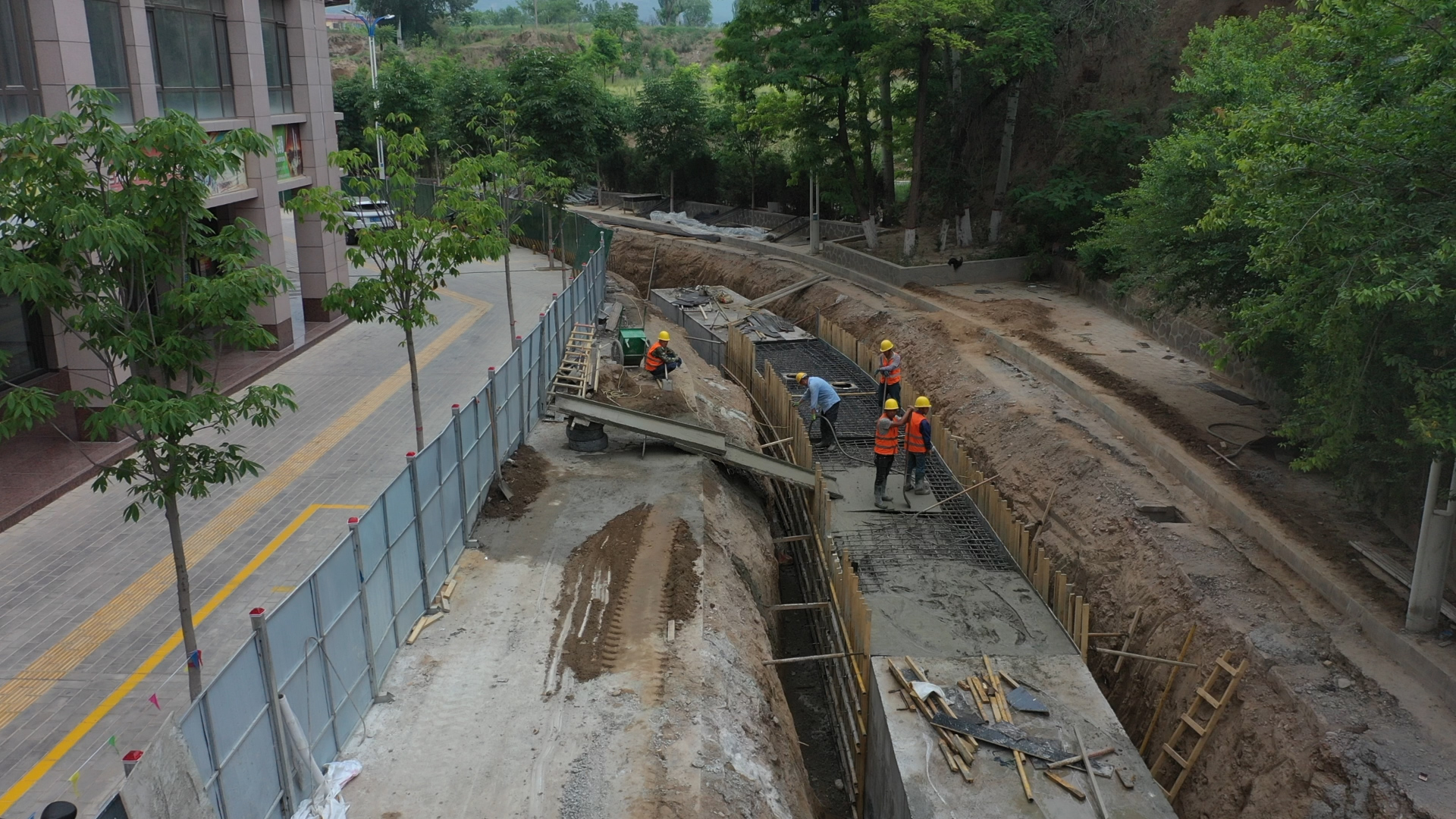 自今年5月份以来,崇信县城南排洪防涝工程正式施工,走进施工现场,伴随着机器的轰鸣声,铲车、挖机来回穿梭,施工人员各司其职、紧张有序的进行施工,力争高效、高质完成施工。