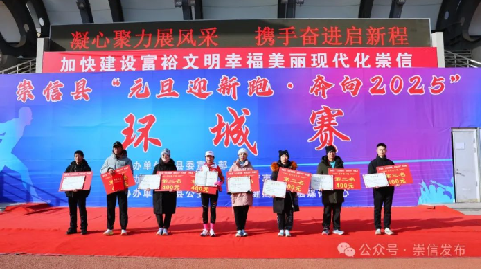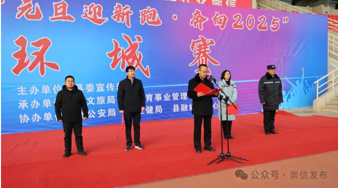 岁序常易,华章日新。12月27日,崇信县举行“元旦迎新跑·奔向2025”环城赛,广大干部群众以奔跑的姿势和朝气蓬勃的精神风貌迎接2025新年的到来。县人大常委会副主任陈明玉,县政协副主席赵瑛出席活动。