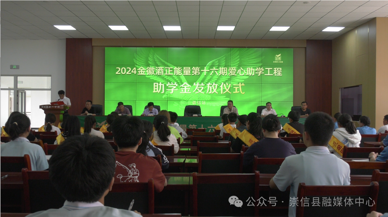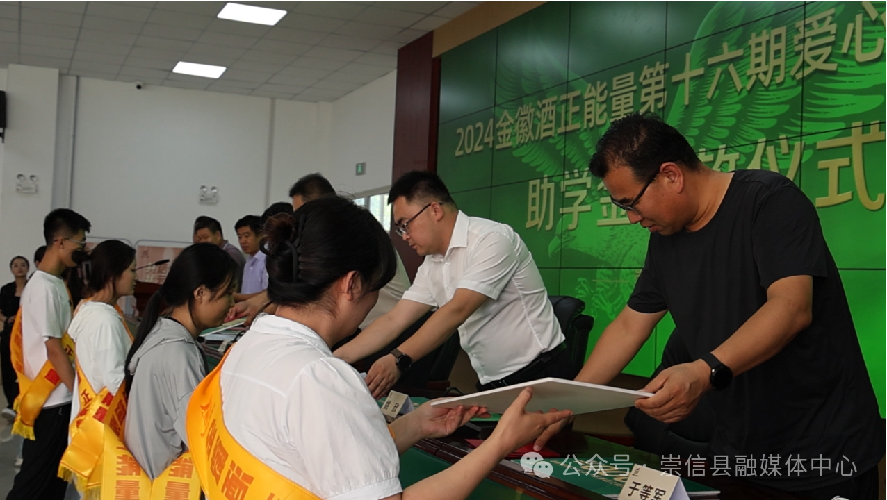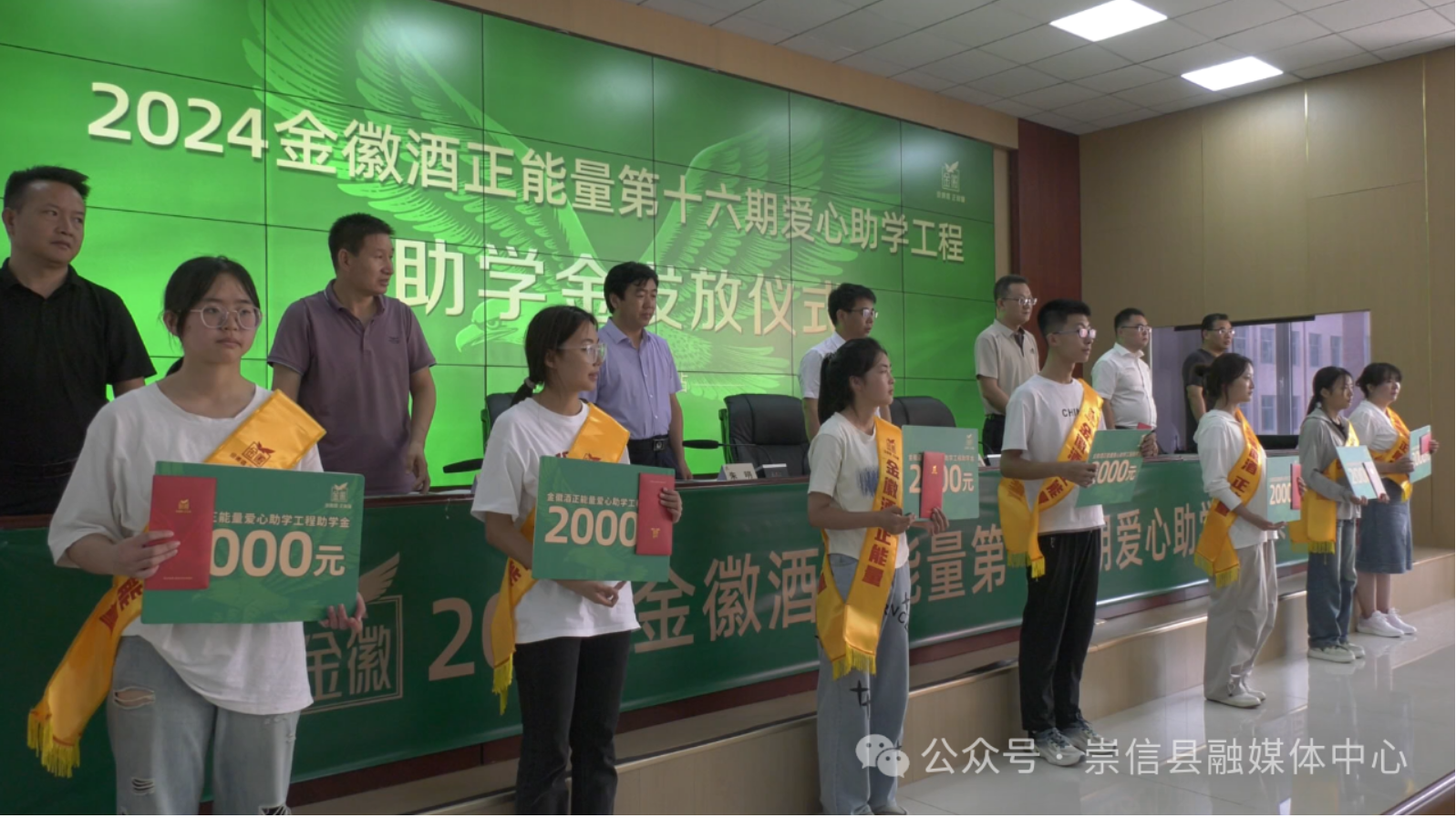 仪式上,金徽酒正能量公益基金会共资助我县家庭经济困难学生20名,资助标准为每人2000元,发放助学金共计4万元。