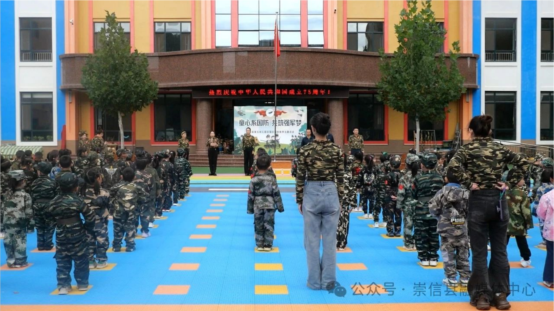 为深入开展幼儿国防教育活动,让中华民族的强国梦、强军梦扎根幼儿的心灵,萌发幼儿热爱党、热爱祖国的情感。9月30日,崇信县第五幼儿园开展了以“童心系国防 共筑强军梦”为主题的国防教育系列活动。
