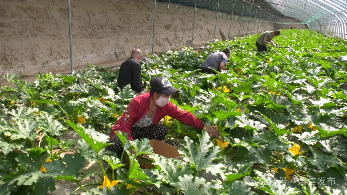 锦屏镇平头沟村党支部书记梁永锋:“锦屏镇平头沟村设施蔬菜基地共计投资800万元,建成有日光温室69座,生产用房110平米,通过发布招募令引进湖北、白银客商入住,种植有崇信甜瓜、豆角、西葫芦等名优果蔬,带动周边群众就近务工,实现了集体增收、农民增富。”