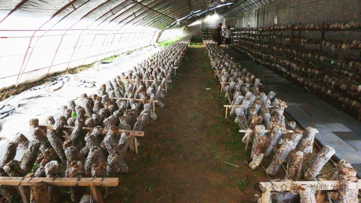 锦屏镇枣林村食用菌基地负责人杨虎生:“目前,我们培育出来适合本地种植的菌类品种有黑木耳、猴头菇、林芝、平菇、杏鲍菇、茶树菇。园区菌类种植大棚一共有86座,其中养菌大棚26座,夏菇种植棚60座。大面积种植的还是香菇,产量稳定、价格稳定,基本都是订单式销售,每年定时送往西安食用菌市场,今年种植的香菇主要是七河一号和七河九号。崇信独特的地理位置和昼夜温差能够种出花菇,花菇比香菇更上一个档次,经济附加值会更高。每一个棒子可以结出5茬菇,每一茬菇产量在3两左右,每年固定销售额在500万左右。基地每年雇佣工人40人左右,常年累计零散工5000多次,带动了当地农民的就业。”