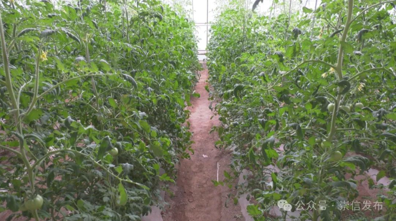 在崇信县汭河川现代循环农业示范园里,一座座蔬菜大棚鳞次栉比,棚内西红柿、黄瓜挂满枝蔓,长势喜人。工人正在进行疏叶、拉枝。崇信县汭河川现代循环农业示范园是县农投公司负责经营的蔬菜园区,园区建有高标准日光温室19座,钢架大棚205座,引进种植了高收718辣椒、流星蜜等新优果蔬品种10余种,繁育优质果蔬种苗500万株,推广运用水肥一体化灌溉等技术,有效增加了果蔬产值,产品销售市场逐步拓宽。