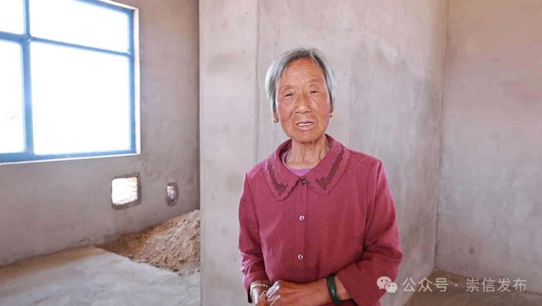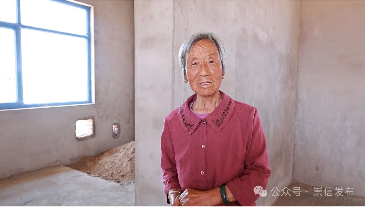 6月19日,记者跟随崇信县柏树镇柏树村干部走进村民王爱菊的家里,镇村干部为老人带来一个好消息,她所享受的生态及地质灾害避险搬迁政策而修建的新房已封顶,听到这个消息后,老人高兴万分。