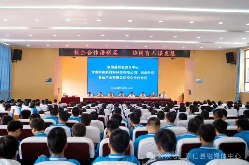 9月2日,甘肃雨森新材料科技有限公司、崇信叶润食品产业有限公司与崇信县职业教育中心校企合作签约仪式在县职中举行。