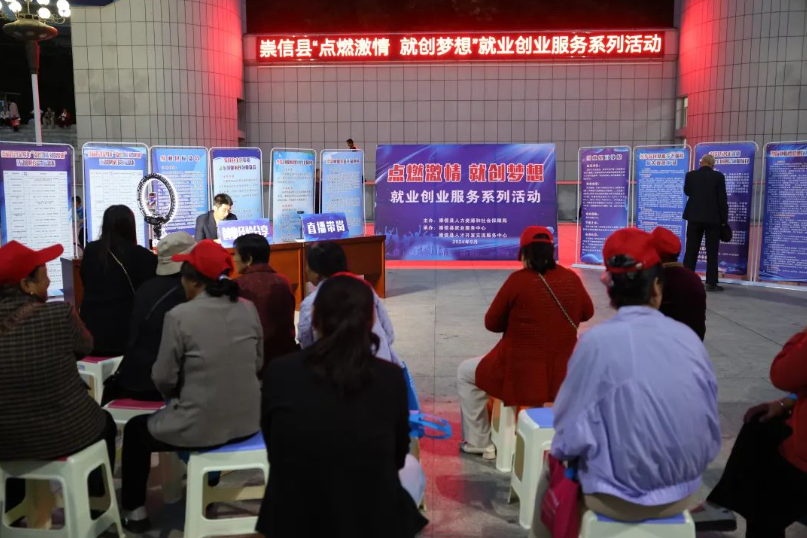 “本场活动分为‘就在夜市’人才招聘、‘就业职引’培训指导、‘凉亭夜话’经验分享、‘宣传引领’政策推广四大系列活动……”在崇信县人社局工作人员李亚丽的介绍下,崇信县2024年“点燃激情 就创梦想”系列就业创业服务专项活动正式拉开帷幕。县域内60余家单位、企业相关负责人化身摊主“挑灯纳贤”,不同年龄求职者穿梭其中“星夜觅岗”,活动现场人头攒动、热闹非凡,有力提升了公共就业服务的温度和求职招聘的热度。