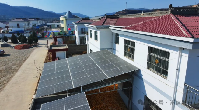 隆冬时节,寒意正浓,崇信融媒新春走基层记者来到新窑镇赤城移民社区,只见白墙红瓦的房屋整齐排列,房顶上一排排深蓝色的光伏发电面板在阳光的照射下熠熠生辉,将光热资源转变为电能,实现清洁能源高效利用。